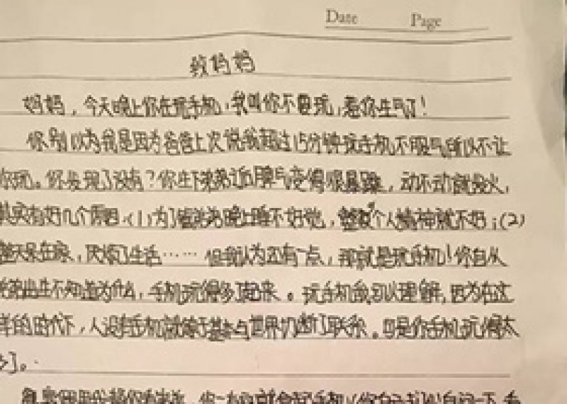 女儿亲笔信:爸爸妈妈都在玩手机,我为什么不可以