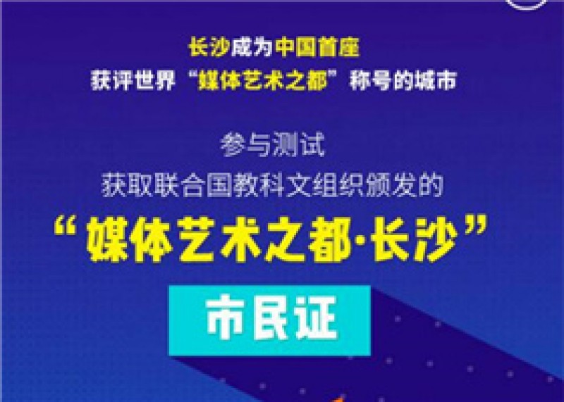 快来获得联合国教科文组织颁发的“媒体艺术之都·长沙”市民证