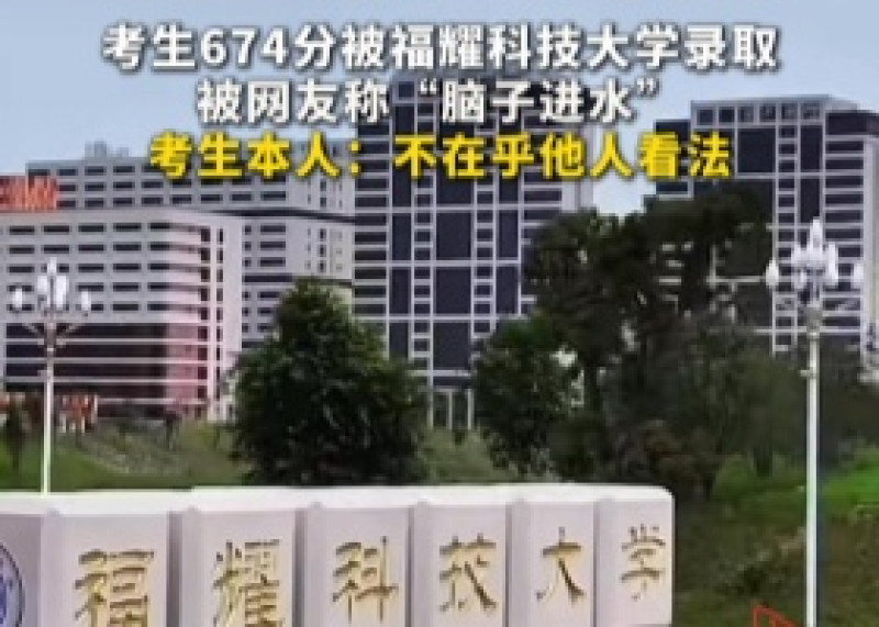 考生674分被福耀科技大学录取,被网友称“脑子进水”。本人:不在乎他人看法