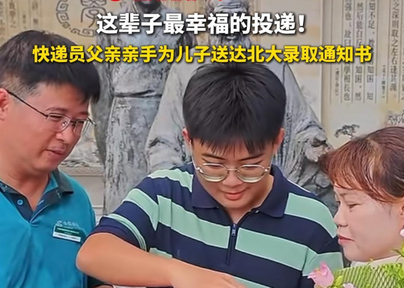 这辈子最幸福的投递!快递员父亲亲手为儿子送达北大录取通知书