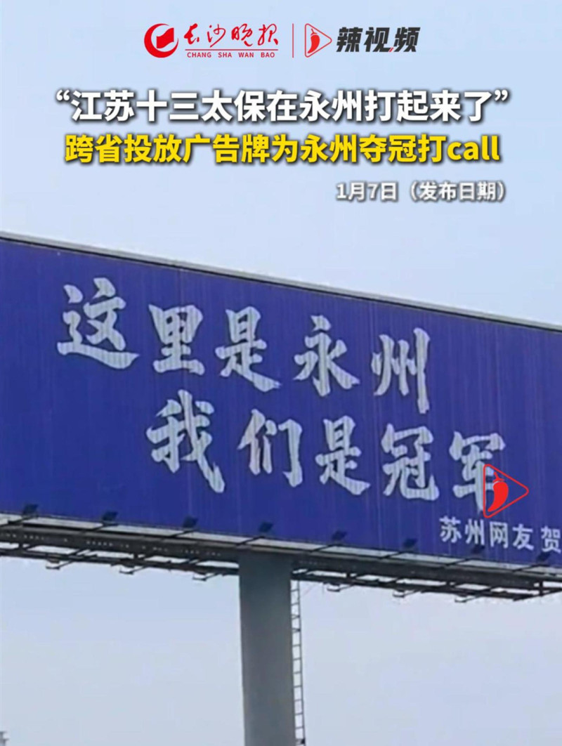 "江苏十三太保在永州打起来了",跨省投放广告牌为永州夺冠打call
