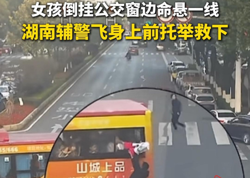 女孩倒挂公交窗边命悬一线,湖南辅警飞身上前托举救下