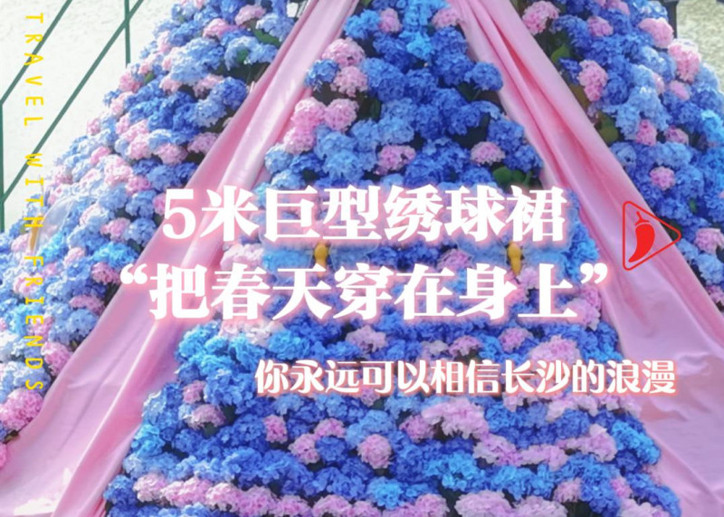 你永远可以相信长沙的浪漫,5米巨型绣球裙“把春天穿在身上”