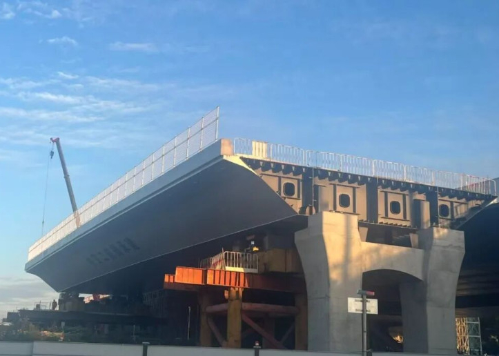 劳动东路三标段长株跨线桥顶推成功,三标段总体进度已推进至58%