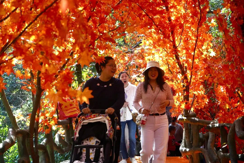 石燕湖“红枫银杏隧道”火了,初冬秋景刷爆社交平台