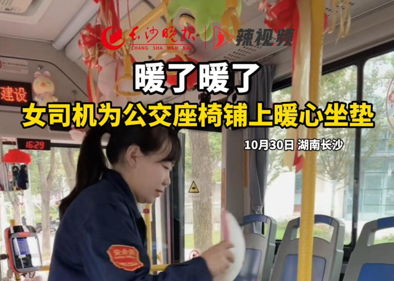 暖了暖了!女司机为公交座椅铺上暖心坐垫