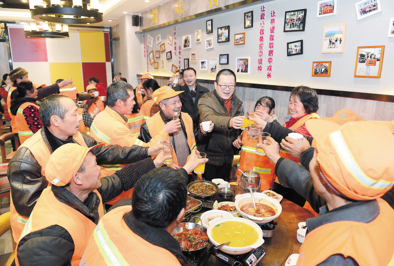 政协委员凑“份子钱”邀环卫工开心吃团圆宴 稿源:长沙晚报2017-01-18 1:52 您的浏览器不支持 video 标签。 您的浏览器不支持 audio 标签。 昨晚,芙蓉区马王堆街道政协联络组的16名委员凑“份子钱”捐资1万多元,邀请马王堆街道环卫所的20名一线环卫工代表吃团圆宴,每人还领到600元过年红包。“谢谢委员们的爱心,我会用心扫好每一段路。”年近六十的环卫工管代益说。据了解,每到春节,城市环卫工基本无法休假,为城市的美容清洁默默奉献着。长沙晚报记者 石祯专 摄 【作者:石祯专】 【编辑:张炎炎 】 长沙晚报社版权声明 关键词:春节慰问 芙蓉区 环卫工 政协委员>>我要举报