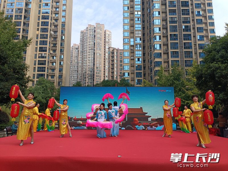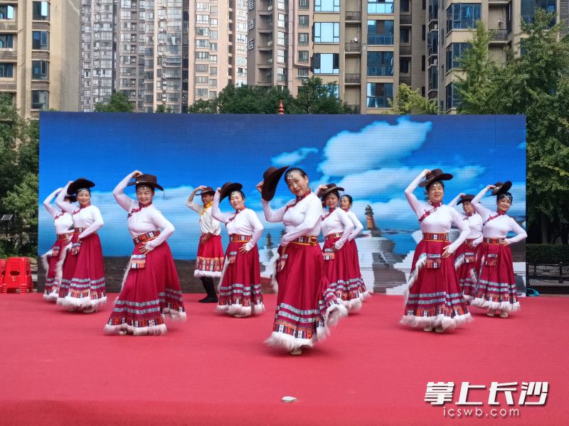 活动在欢快热烈的广场舞《幸福一起走》中拉开帷幕,舞者们精神饱满、步伐轻盈,用优美的舞姿展现了新时代老年人积极向上的精神风貌。随后,男声合唱《鼓浪屿之波》深情悠扬,歌声中饱含对祖国山河的热爱与眷恋,引发观众强烈共鸣。藏舞《起舞》则以独特的民族风情、绚丽的服饰和奔放的舞姿,带领大家领略雪域高原的神秘与壮美,赢得阵阵掌声。广场舞《灯火里的中国》以恢宏的气势和深情的演绎,描绘了祖国繁荣昌盛、万家灯火的动人画卷。压轴登场的扇舞《五星红旗》气势磅礴,舞者手持红色扇子,舞出了对伟大祖国的无限热爱与自豪。