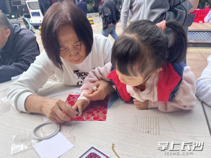 除了文艺演出,活动现场还设置了传统文化体验区,吸引了众多居民驻足参与。手工锤制作区,老人们亲手体验传统工艺的魅力,在敲敲打打中感受匠心传承;宋锦手工画展区则展示了精美的非遗作品,居民们在志愿者的指导下尝试粘贴珍珠、装裱,近距离感受中华优秀传统文化的独特韵味。与此同时,社区工作人员和志愿者还向居民发放了安全生产、社保服务、垃圾分类、禁毒等宣传资料,耐心讲解相关政策法规和生活常识,倡导文明健康、安全环保的生活方式,将便民服务送到居民“家门口”,切实提升群众的获得感与幸福感。