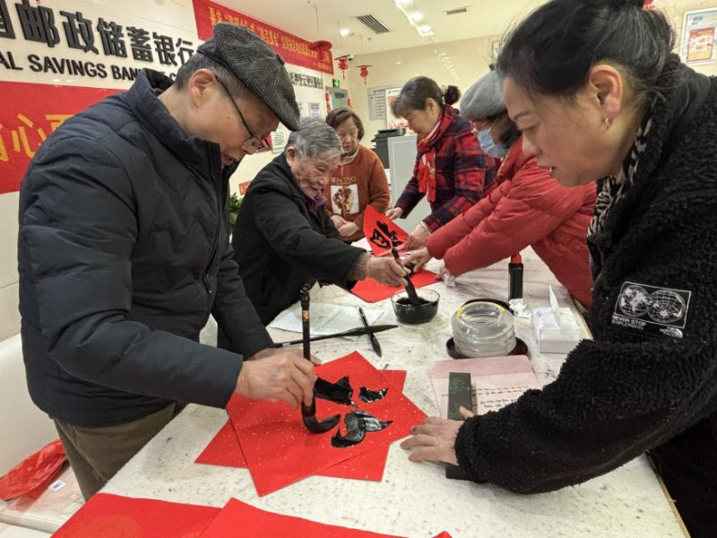 长沙晚报掌上长沙2月12日讯(通讯员 肖妮娜)为传承中华优秀传统文化,丰富社区居民精神文化生活,2月11日,芙蓉区荷花园街道荷晏社区联合中国邮政储蓄银行长沙市芙蓉区支行,在支行网点大厅举办“欢欢喜喜过大年”新春书法沙龙活动,以笔墨传情、挥毫送福,让居民在家门口感受传统年俗魅力。