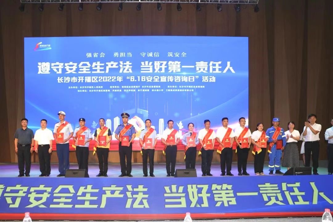 活动现场,主持人宣读了开福区“最美应急人”评选结果并现场授奖。樊希柱、郭泽兵、李峥嵘、熊俊、周辉、陈标、陶珊、孙立夫、文军、吕宏声、汤国清、余广奇获得开福区“最美应急人”称号。