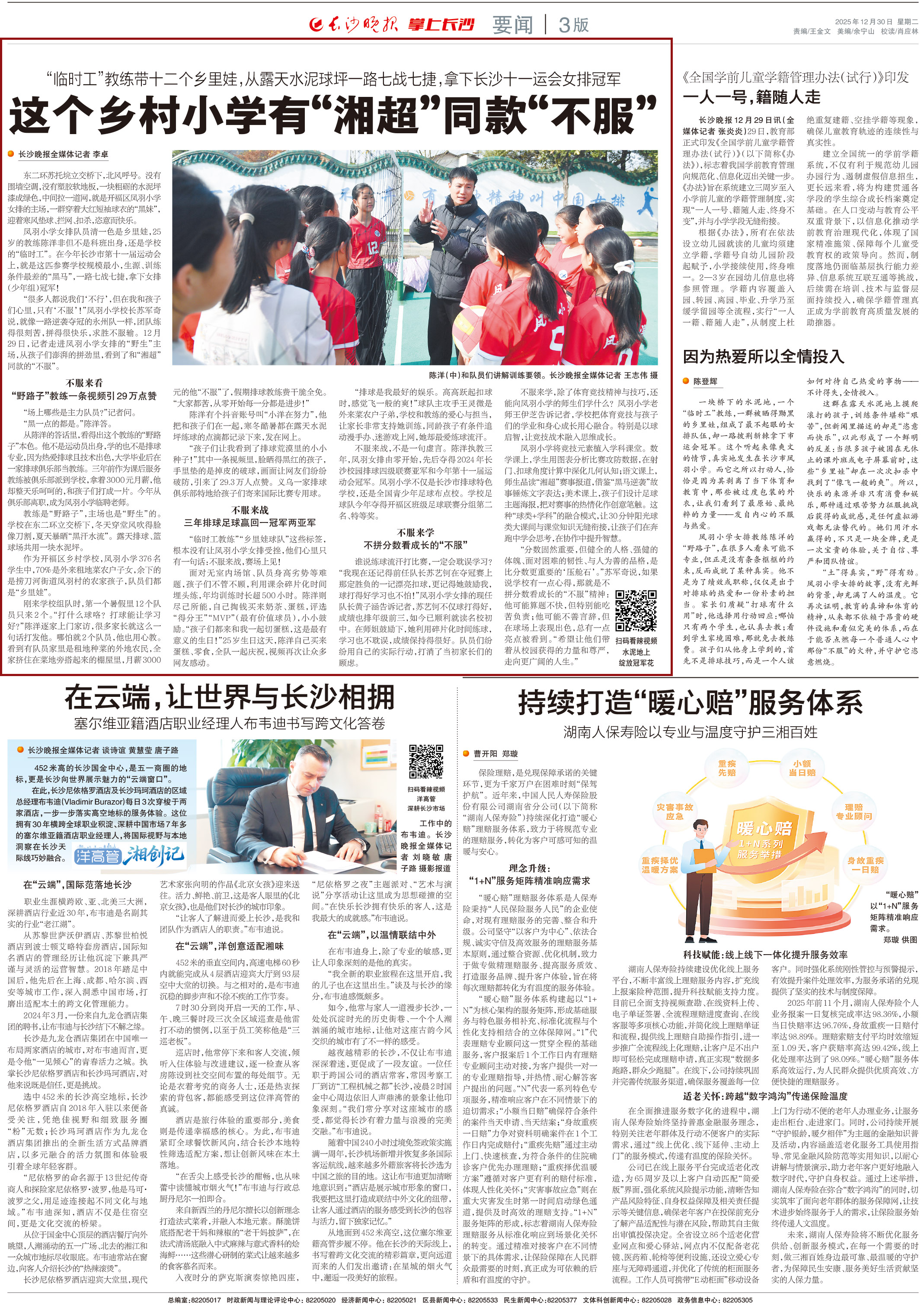 “很多人都说我们‘不行’,但在我和孩子们心里,只有‘不服’!”凤羽小学校长苏军奇说,就像一路逆袭夺冠的永州队一样,团队练得很刻苦,拼得很快乐,求胜不服输。12月29日,记者走进凤羽小学女排的“野生”主场,从孩子们澎湃的拼劲里,看到了和“湘超”同款的“不服”。