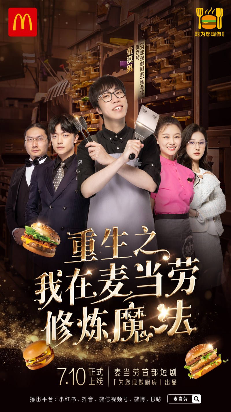 为了让消费者更好地了解“为您现做厨房”,麦当劳携手“为您现做厨房”推荐官、人气脱口秀演员童漠男,共同打造麦当劳首部短剧——《重生之我在麦当劳修炼魔法》。这部短剧在麦当劳厨房真实场景拍摄,创新采用“短剧+脱口秀”的模式,邀请消费者在高能反转和密集埋梗中,沉浸式体验热而新鲜的麦当劳美味的配餐过程,一起感受麦当劳“为您现做厨房”背后的“美味魔法”。即日起,短剧《重生之我在麦当劳修炼魔法》将上线麦当劳社交平台及App、点餐小程序。