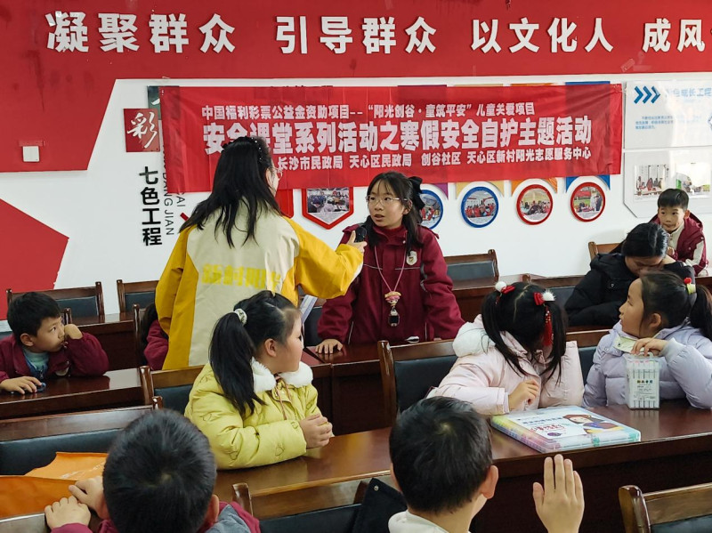 长沙晚报掌上长沙2月1日讯(通讯员 彭彦婷)1月28日,由中国福利彩票公益金资助,长沙市民政局、天心区民政局指导,天心区黑石铺街道创谷社区支持,天心区新村阳光志愿服务中心主办的“寒假安全‘小课堂’,自我保护‘大本领’”主题活动,在创谷社区公共服务中心四楼开展,社区青少年在家长陪同下开启实用暖心的安全守护之旅,以“利剑护蕾”之力筑牢青少年假期安全防线。