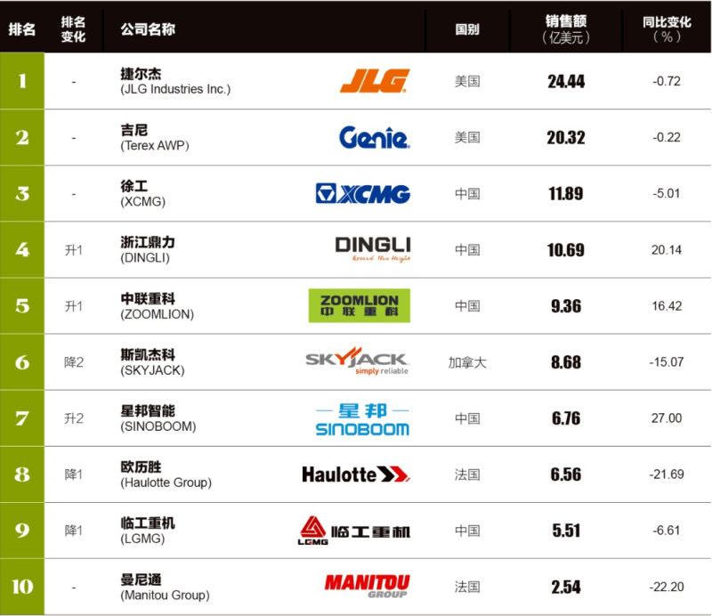 记者了解到,该榜单主要依据入榜企业自行式高空作业平台相关业务上一年度的全球销售额,同时参考入榜企业的盈利能力和成长力进行排序。