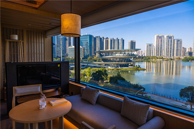 酒店拥有全湖景客房及套房129间,将梅溪湖的美景尽收眼底,尽显悠闲惬意。每一间都充满温馨与舒适,让宾客在旅途中找到家的温馨。酒店提供 24 小时贴身管家式服务,随时为宾客创造令人向往与难忘的旅居体验。为满足不同客人需求,酒店还为不同类型客人提供亲子房、无障碍房、婚房、宠物友好专属房,房间会有相对应的个性化布置。