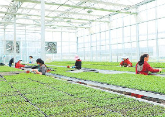 在李概明的指导下,蒋国祥及时对育秧基地清沟理水,秧苗喷药预防,补施叶面肥,他告诉记者,育秧中心的秧苗离插秧不到十天时间,在农技专家的指导下,适时播种,科学控温控湿,目前苗齐秧壮,来势很好。
