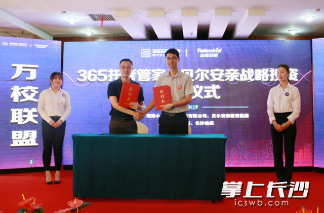 据了解,贝尔安亲作为托管行业的领导品牌,在过去的五年时间里,依托标准化流程、信息化管理工具和优秀的团队,通过600多家校区的努力,形成了托管行业标准、行业口碑和行业品质。在会上,贝尔安亲与365托管管家签署战略投资协议,双方将一起面向行业开发更好的课程,提供更好的服务与行业师资培训。