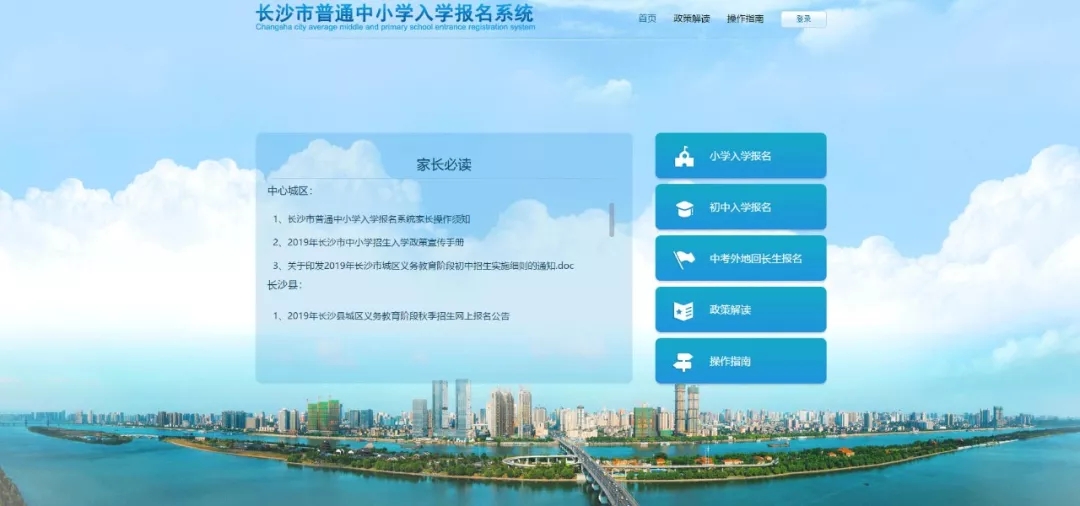 长沙城区凡就读小学一年级和小升初跨区升学、配套入学、外地回长的学生,须于当年4月15日(含)之前登录“长沙市普通中小学入学报名系统”进行网上报名。报名截止后,已录入报名系统的信息不能修改。报名时不得提交虚假信息,否则影响正常入学。
