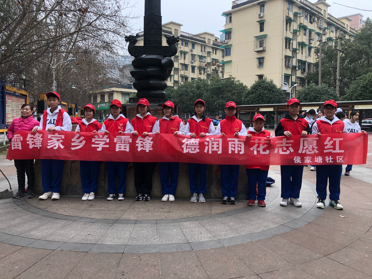 候家塘街道候家塘社区与雅礼实验室中学C2105班的同学们在红旗法治长廊、进行了一场别开生面的学法守法学雷锋志愿者活动,在候家塘社区法治长廊清扫垃圾捡拾果皮纸屑,清理花草丛中的白色垃圾,为学法者留下一片净土与舒适的环境。学校其他志愿者走进市中心医院、、市党史馆等,用欢声笑语和真诚陪伴给空巢老人和孤残儿童带去温馨与祝福;或进行交通劝导,耐心提醒穿梭的行人,细心搀扶老人走过斑马线,为街道增添了温暖;或在社区设立“大雅悦读”图书角,用自身资源优势,立足校园,助力构建学习型社区,助推社会文明新风尚;或争当红色小讲解员,播撒一颗颗爱党爱国的种子……