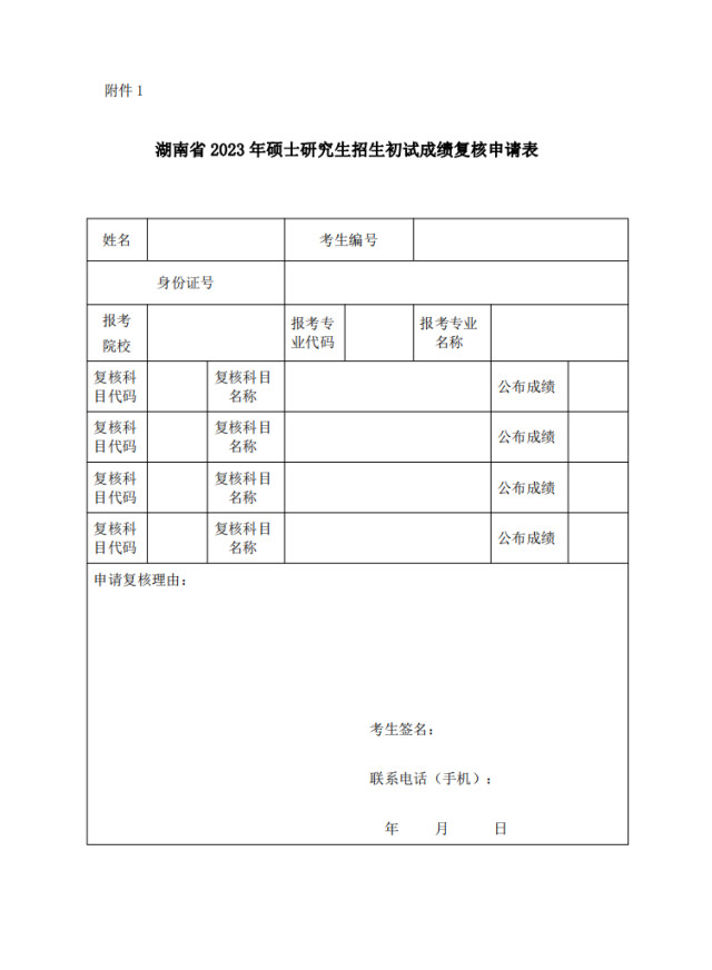 申请时,考生如实填写《湖南省2023年硕士研究生招生初试成绩复核申请表》(见附件1),签字确认后拍照,和本人身份证的照片一起作为附件,通过电子邮件的方式发送到有关招生单位(见附件2)。成绩复核结果可在3月3日后向报考的招生单位查询。