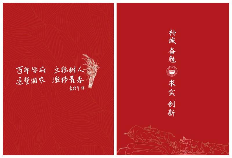 封底朴诚、奋勉、求实、创新的校训,彰显湘农人精气神的五头牛,追溯着这座百廿大学的春去秋来。