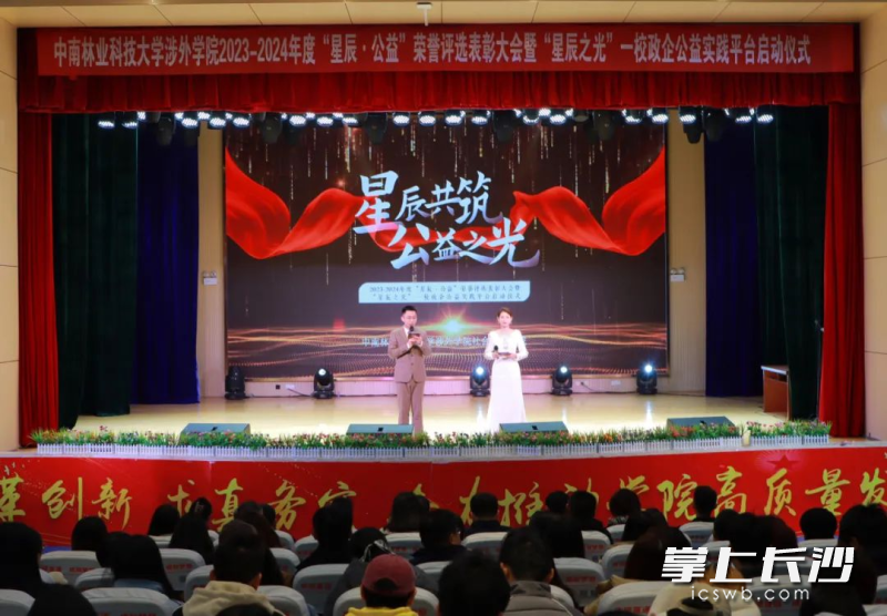 长沙晚报掌上长沙12月20日讯(通讯员 何先进 龚沙)探求公益人才培养的新路径,汇聚政企校等多方力量共同打造公益实践平台,12月17日,中南林业科技大学涉外学院2023—2024年度“星辰•公益”荣誉评选表彰大会暨“星辰之光——校政企公益实践平台”启动仪式举行。