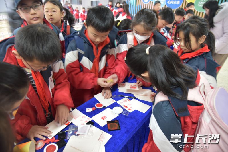 学校门口,同学们一个个排队打卡,拓印姓名签,为新学期开学增添了满满的仪式感。