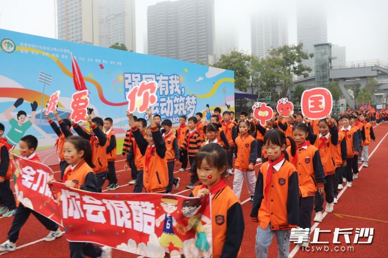 长沙晚报掌上长沙10月16日讯(全媒体记者 陈良 通讯员 胡赛花)16日,湖南湘江新区西雅博才小学田径场上洋溢着热烈的氛围,该校第五届运动会正式拉开帷幕。本次运动会以“强国有我,运动筑梦”为主题,不仅设置了覆盖全年级的田径赛事,也有教师专属运动环节。