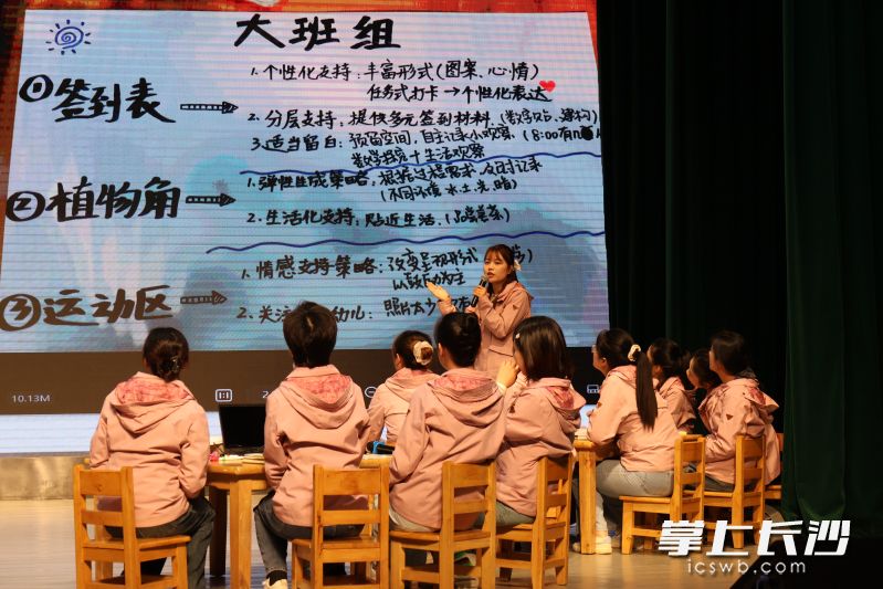 长沙市学前教育协会会长肖晓敏进行了专家点评。她指出,“呼应幼儿”应涵盖对幼儿心理情感、认知发展、社会性发展、行动与能力以及审美与文化等需求的呼应,期望教师们不断提升专业素养,将环境创设理念切实转化为具体行动,使每一面墙都能成为与孩子深度对话的“第三位老师”。