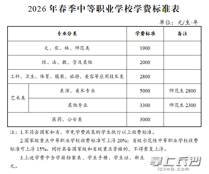 长沙晚报掌上长沙3月3日讯(全媒体记者 岳霞 实习生 邹静逸)开学在即,长沙市2026年春季普通中小学、中等职业学校收费标准及有关事项正式明确。政策聚焦免费惠民、标准清晰、严管乱收费、精准助困四大方向,切实减轻家长负担,保障教育公平。
