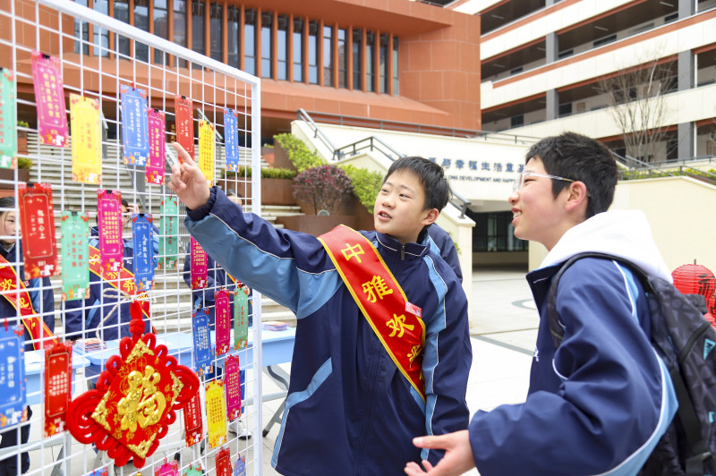 报到日,中雅培粹学校精心设计了灯谜竞猜、打卡合影、赠送贺卡等环节和活动。均为长沙晚报通讯员杨梦莹摄