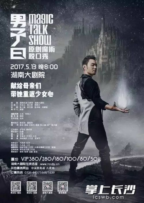 神奇、新鲜、搞笑!5月13号,知名魔术师、湖南卫视双语主持人邓男子将在湖南大剧院为每一位母亲奉上一份节日的礼物!