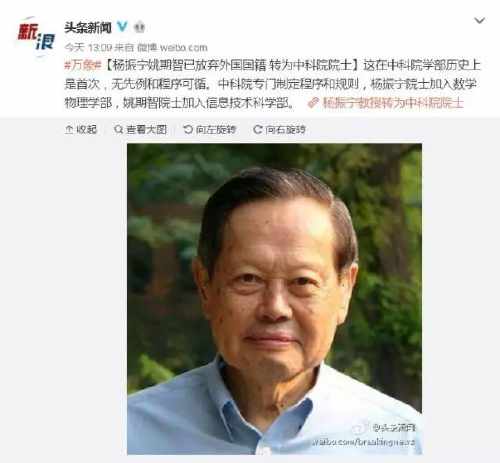 二位超级大牛,已经报效祖国多年,此次入籍明志,自当可喜可贺。但互联网上“超热”反应几乎全部针对95岁的杨振宁,其中不乏含有恶意的揣测。