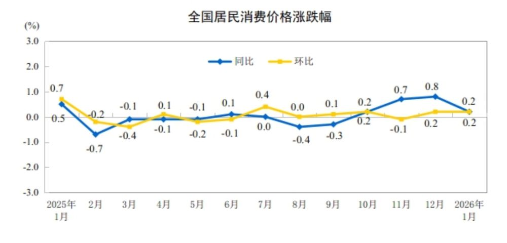 国家统计局:1月份居民消费价格同比上涨0.2%