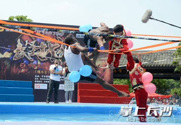 长沙晚报掌上长沙4月30日讯(记者 吴颖姝)40位外国勇士降临宁乡关山发起战书,40位中国勇士勇敢应战,一场紧张激烈的“绳”勇大对决在宁乡开战。今日下午,“传奇之地·宁静之乡”宁乡全域旅游首场大型活动”武圣战武绳之中外’绳’勇大决战”在宁乡县金洲镇关山景区展开,来自喀麦隆、塔吉克斯坦等19个国家的 “武圣”玩得酣畅淋漓,炒热了五一小长假第一天的宁乡关山景区。