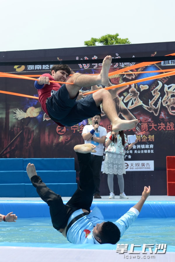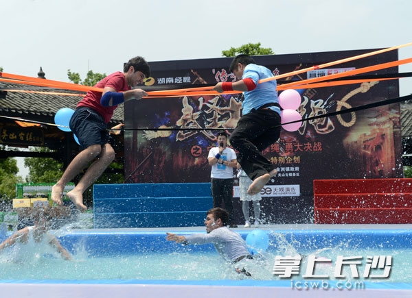 ▲4月30日下午,“传奇之地·宁静之乡”宁乡全域旅游首场大型活动”武圣战武绳之中外’绳’勇大决战”在宁乡县金洲镇关山景区展开,中外挑战选手在一根绳子上展开激烈角逐。均为长沙晚报记者石祯专摄
