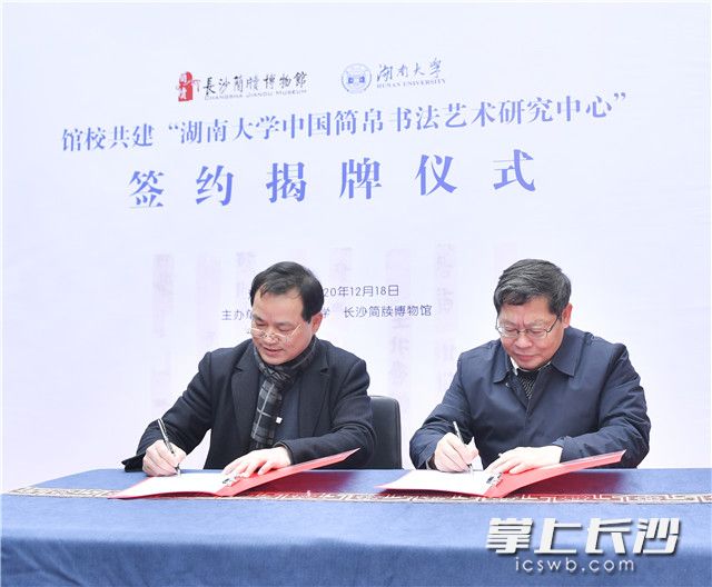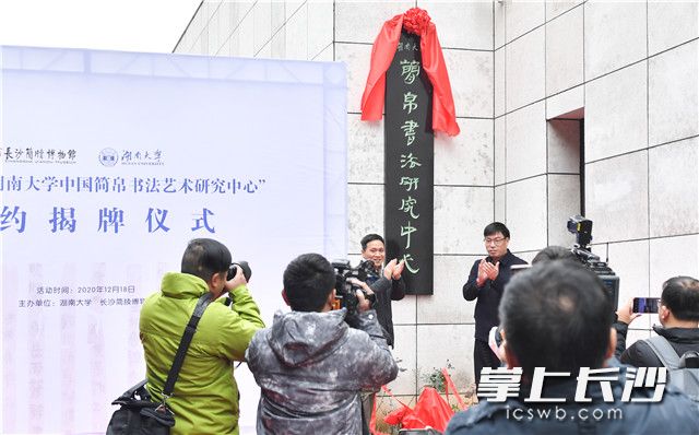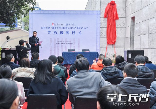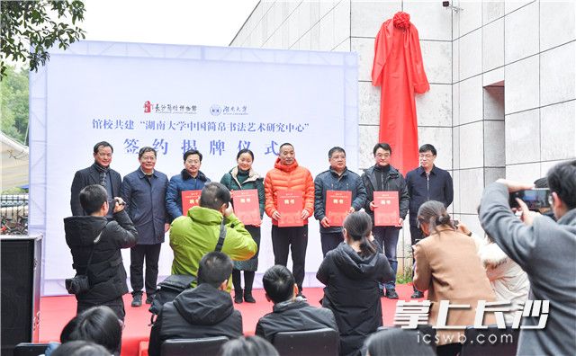 馆校共建“湖南大学中国简帛书法艺术研究中心”签约挂牌。照片均为长沙晚报全媒体记者 邹麟 摄