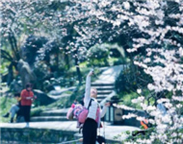 以前,我一直以为樱花是从日本传过来的,包括春季观赏樱花的习俗也是从日本引进的。一谈到樱花,人们往往就会想到日本。的确,作为日本的“国花”,春季观赏樱花似乎是日本民族的一大爱好。历史上,据说从江户时代,春季赏樱在民间就开始盛行了,现代日本政府更是把每年的3月15日至4月15日作为樱花节。在这个季节里,日本人群聚各地赏樱名所,席坐于樱花树下,举杯高歌,谈笑春光,感悟人生如樱花般的绚丽而短暂,并以此作为“樱花盛宴”。
