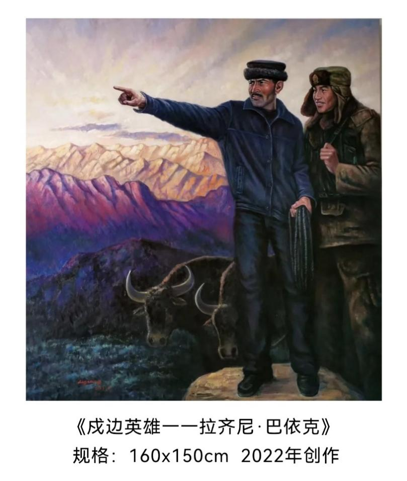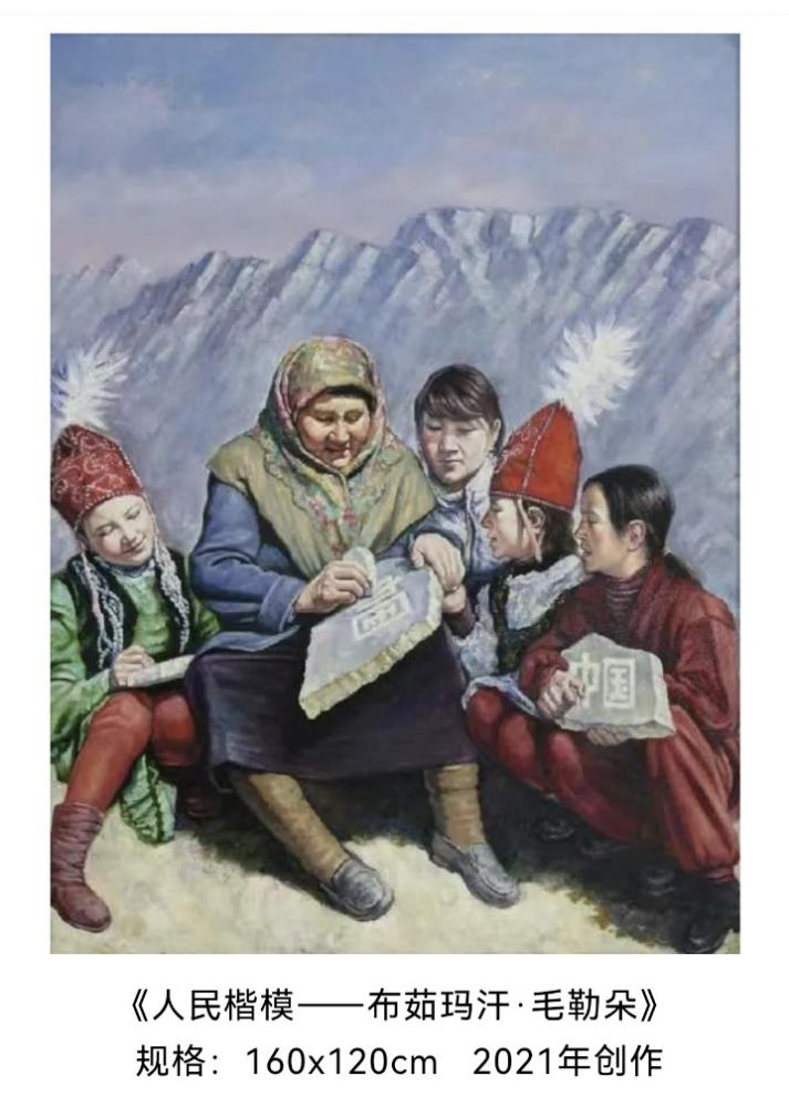 与伟大时代同频共振是李强作品又一鲜明特征,并赋予作品鲜活气息。他比较偏爱各色人物,笔触涉猎广泛,既有国家领袖、革命先驱、时代楷模,又有烟火气十足的普通百姓。在作品中,他构思精巧,别出心裁地将这些人跟新疆紧密联系起来,截取他们跟新疆密切相关的历史瞬间或者生活横断面,如毛泽东、周恩来、邓小平、陈云、习仲勋、王震;如在新疆这片土地上默默奉献,甚至献出生命的英烈陈潭秋、毛泽民、林基路、杜重远、乔国桢;如人民英雄艾热提·马木提、拥军模范牙库甫、阿帕妮妈妈、人民楷模布茹玛汗·毛勒朵、道德模范拉齐尼·巴依卡、好人阿力木,以及生活在这片土地上的普通百姓——他们的喜怒哀乐,他们的悲欢离合,他们的风俗民情。