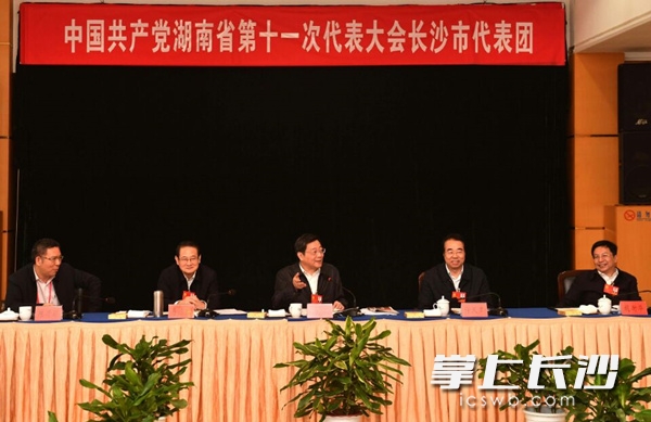 今日,杜家毫同志来到省第十一次党代会长沙市代表团,与代表们一同讨论审议党代会报告。长沙晚报记者周柏平摄
