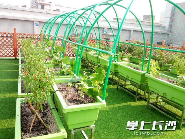 长沙晚报掌上长沙9月12日讯 在长沙雨花亭凯德广场四楼天台,有一个占地120平米的屋顶农庄,绿色的种植盆里种满了黄瓜、茄子、辣椒、蕹菜等时令蔬菜,在阳光雨露的滋润下,这些栽种的农作物茁壮成长,呈现出一派生机勃勃的景象。凯德广场屋顶农庄是一个集农趣体验、科普教育、休闲娱乐、亲子活动、绿化环境等多重功能于一体的社会实践活动基地。