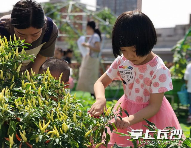 9月8日上午,由凯德广场、长沙晚报掌上长沙、慕田乐植和彩翼儿童美术共同组织的“小小农艺师”亲子体验活动在屋顶农庄举行,40组亲子家庭“上楼下乡”,在繁华闹市中享受都市田园之乐。