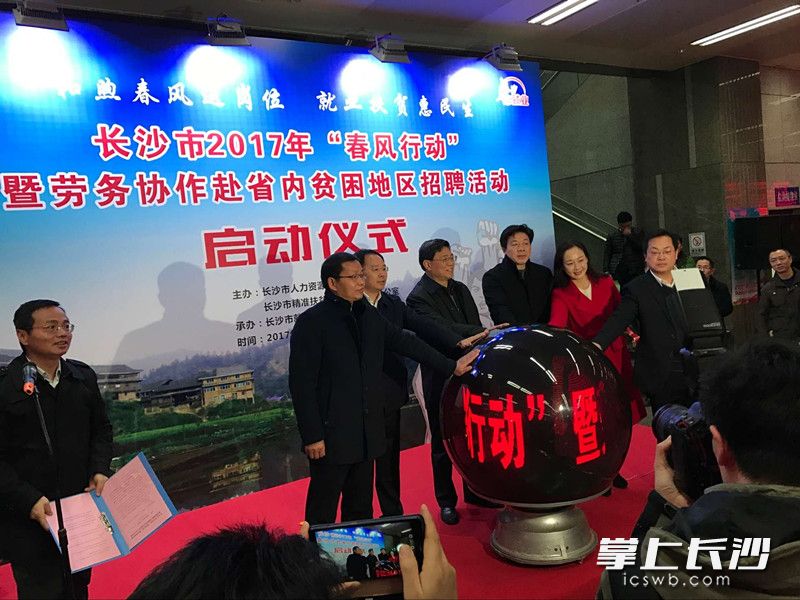 长沙晚报掌上长沙2月3日讯(记者 李静 通讯员 王雨果 实习生 胡玲)今天是节后上班第一天,由市人社局、市精准扶贫工作领导小组办公室主办,市就业服务局承办的2017年长沙市“春风行动”暨劳务协作赴省内贫困地区招聘活动正式启动。省委组织部副部长、省人社厅党组书记、厅长贺安杰,省扶贫开发办公室副主任黎仁寅,副市长李蔚出席相关活动。