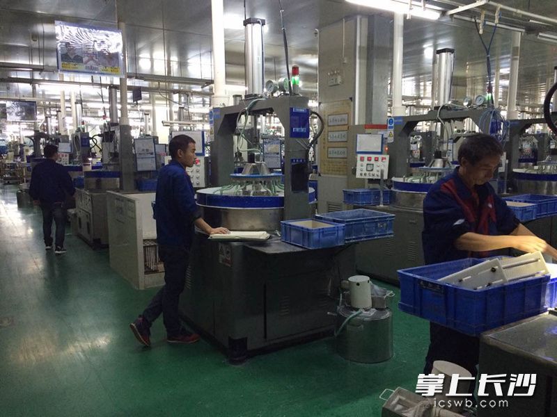 从金阳大道直奔蓝思科技,这家浏阳财税贡献最多的非公企业已经开工生产。在九厂忙碌的生产车间里,曹立军询问企业的生产情况,企业负责人介绍,从去年开始,蓝思科技进行了全面的技术升级改造,同样一条生产线,生产效率提高了30%到40%,而用工人数减少将近一半,这些节约下来的工人能有效地缓解蓝思三期生产基地投产后的用工压力。今年以来,随着电子消费品市场的回暖,企业生产形势大好。
