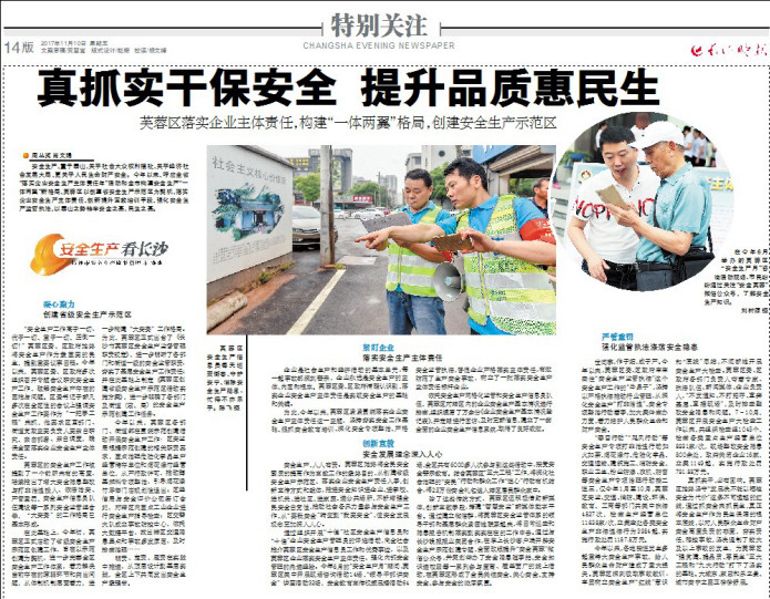 安全生产,重于泰山,关乎社会大众权利福祉,关乎经济社会发展大局,更关乎人民生命财产安全。今年以来,呼应全省“落实企业安全生产主体责任年”活动和全市构建安全生产“一体两翼”新格局,芙蓉区以创建省安全生产示范区为契机,落实企业安全生产主体责任、创新提升宣教培训手段、强化安全生产监管执法,以泰山之势铸牢安全之基、民生之基。