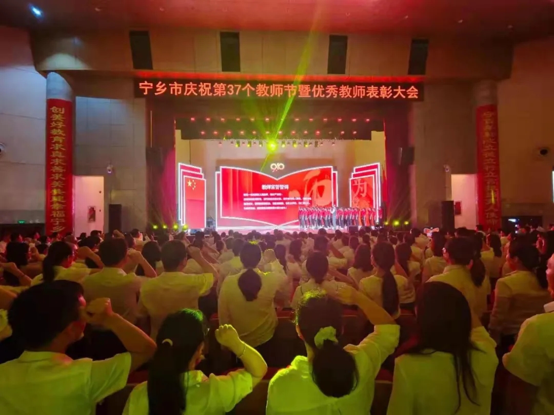 大会结束前夕,与会全体教育工作者一起宣读了誓词:忠诚党的教育事业,遵守教育法律法规,履行教书育人职责,引领学生健康成长,做到有理想信念、有道德情操、有扎实学识、有仁爱之心,为教育发展、国家繁荣和民族振兴努力奋斗!
