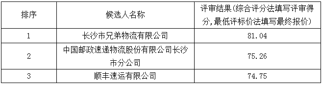 长沙晚报传媒集团有限公司运输服务项目结果公告