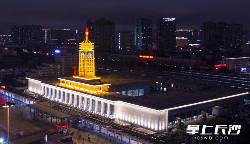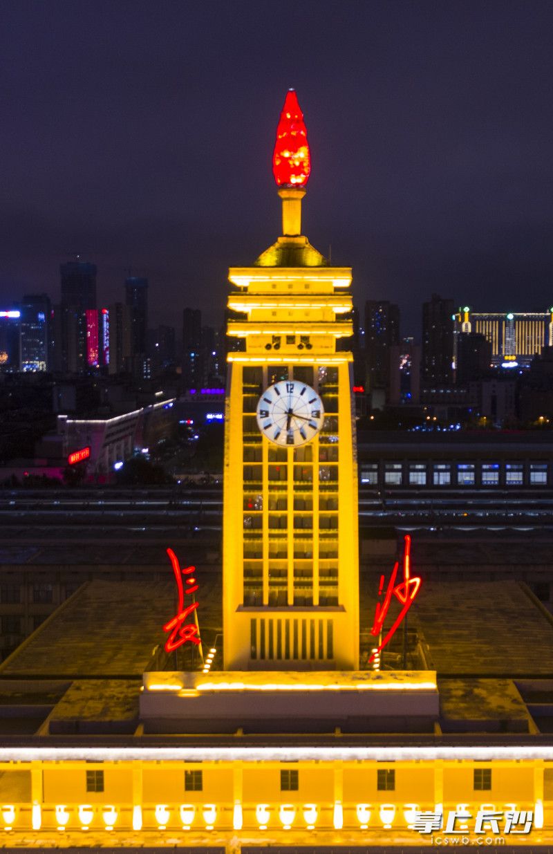 长沙火车站钟楼上的火炬重新“点燃”——亮灯