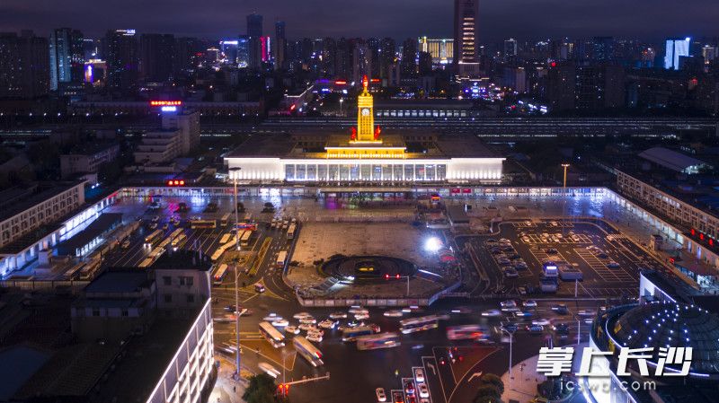 长沙晚报掌上长沙11月25日讯(全媒体记者 邹麟 )11 月 25 日傍晚 ,长沙街头华灯初上,长沙地标火车站钟楼上的火炬重新“点燃”——亮灯,红彤彤的火炬“换装”后更加透亮,成为夜晚五一路上最亮眼的标识。经过提质改造后的火车站也焕然一新,记者看到,钟楼下的火车站外墙已粉刷一新,南北两侧售票厅和邮政大楼的立面也进行了装饰,周边也铺上了新地砖,在灯光的照耀下,格外璀璨夺目。
